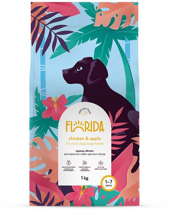 Ниже Вы можете прочитать отзывы на Florida сухой корм для взрослых собак крупных пород с курицей и яблоком 1кг, ознакомится с подробными характеристиками, посмотреть интересные обзоры и фотографии на Florida сухой корм для взрослых собак крупных пород с курицей и яблоком 1кг.