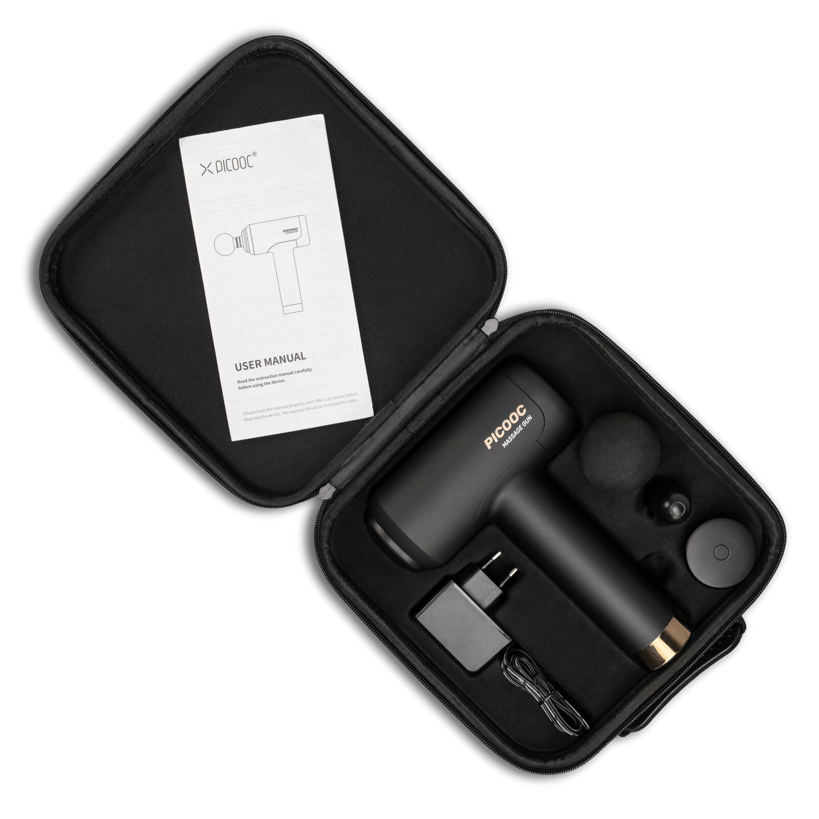 | Подробная комплектация | Перкуссионный массажер Picooc P1 Classic, 3 сменные насадки: круглая, плоская и пулевидная, Адаптер питания, Чехол-кейс, Документация |