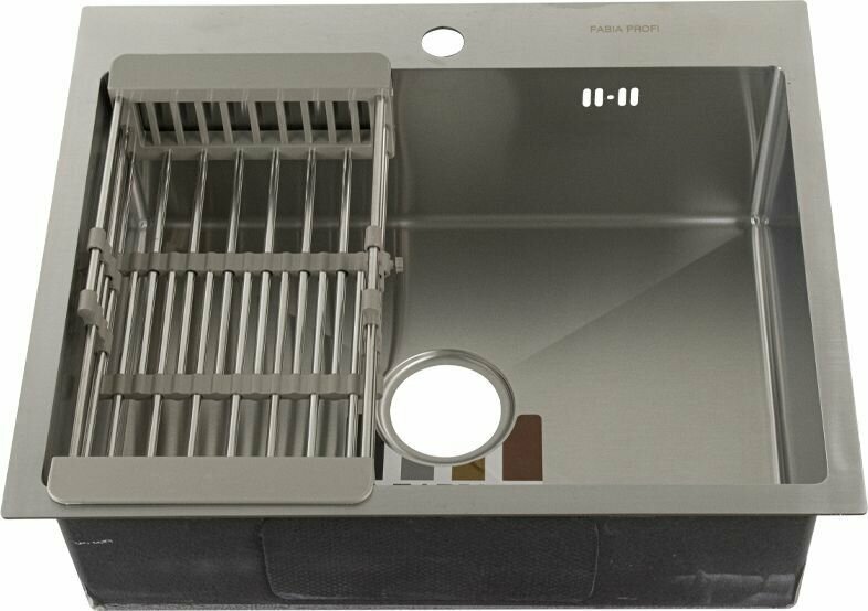 Кухонная мойка врезная из нержавеющей стали Fabia Profi 60503LR 60x50 см Глубина 20см, Сатин матовая поверхность, сифон и коландер в комплекте