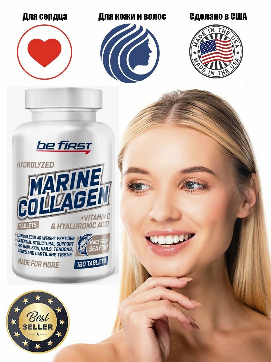 Be First Marine Collagen + hyaluronic acid + vitamin C 120 таблеток (Be First) интересное: