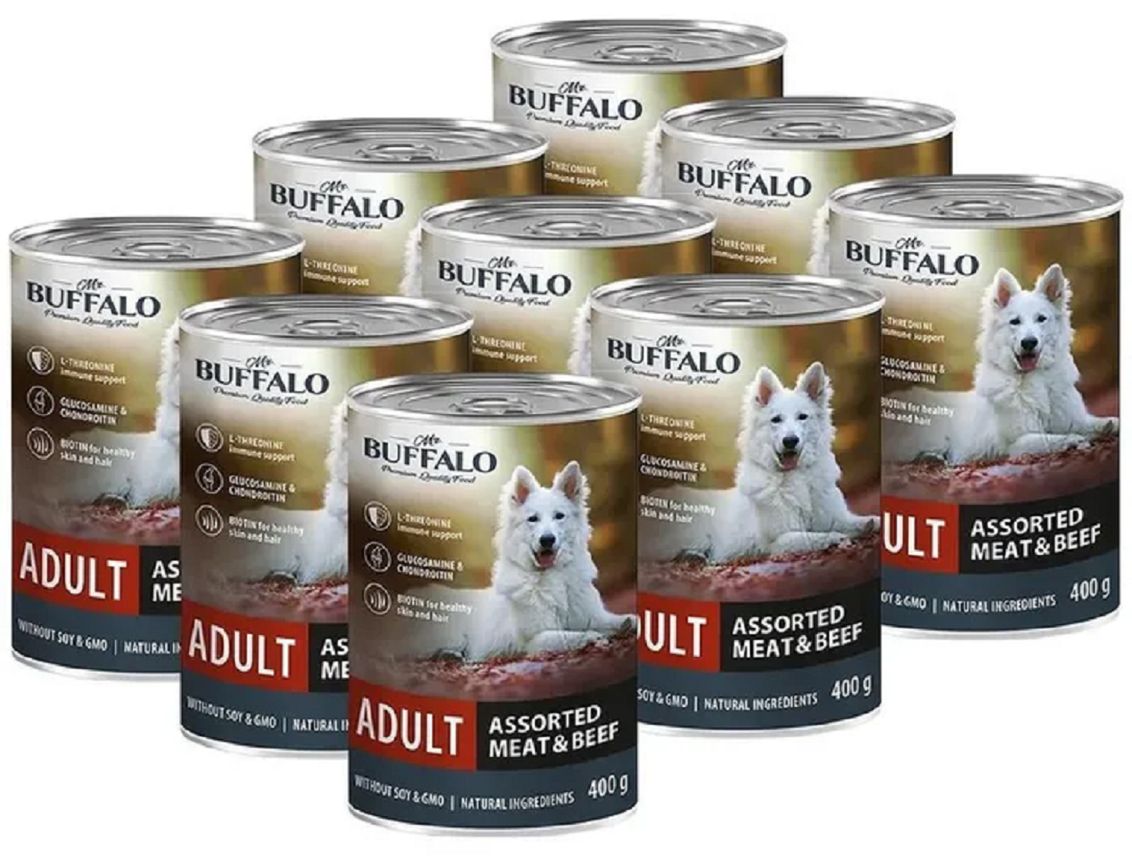 Влажный корм Mr.Buffalo Adult для собак, консервированный, мясное ассорти с говядиной, 400 г х 9 шт