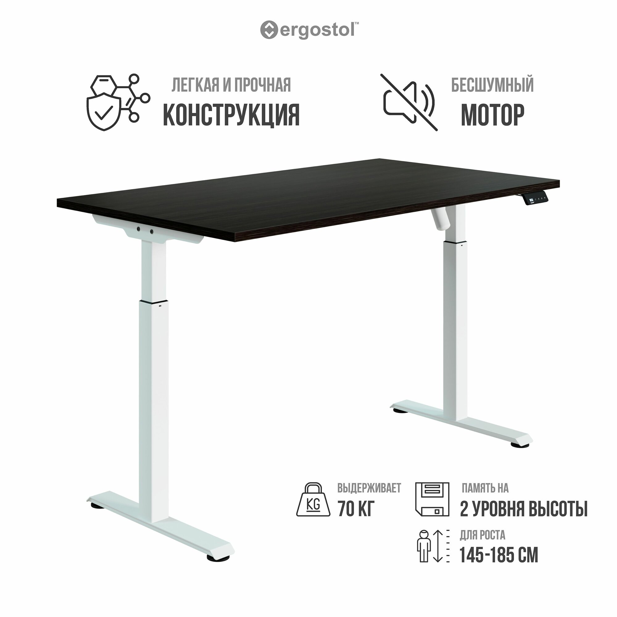 Стол компьютерный, письменный регулируемый по высоте Ergostol Start 2.0, 140х70 см, Белый шагрень/черный