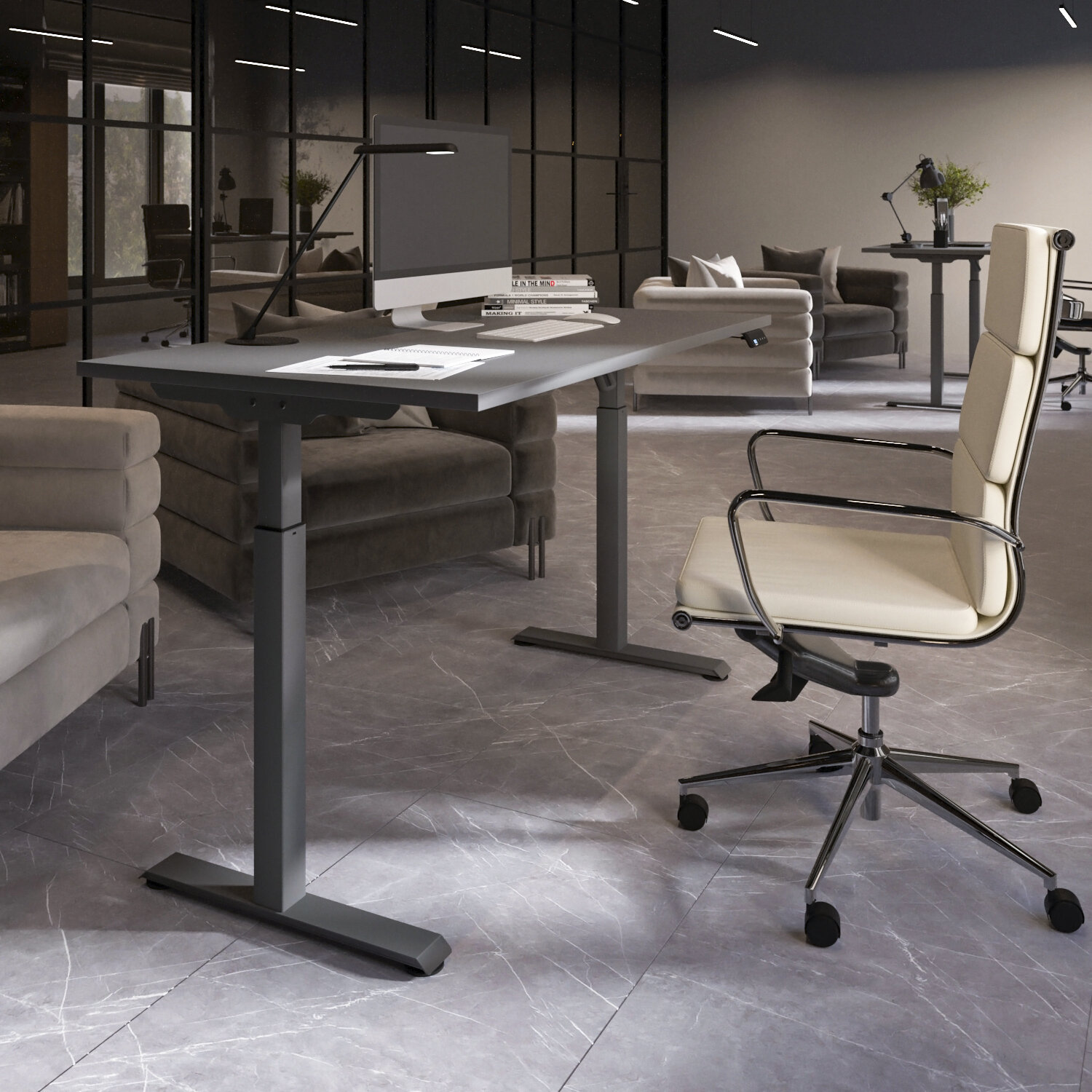 Стол компьютерный, письменный регулируемый по высоте Ergostol Start 2.0, 160х80 см, Серый асфальт/черный