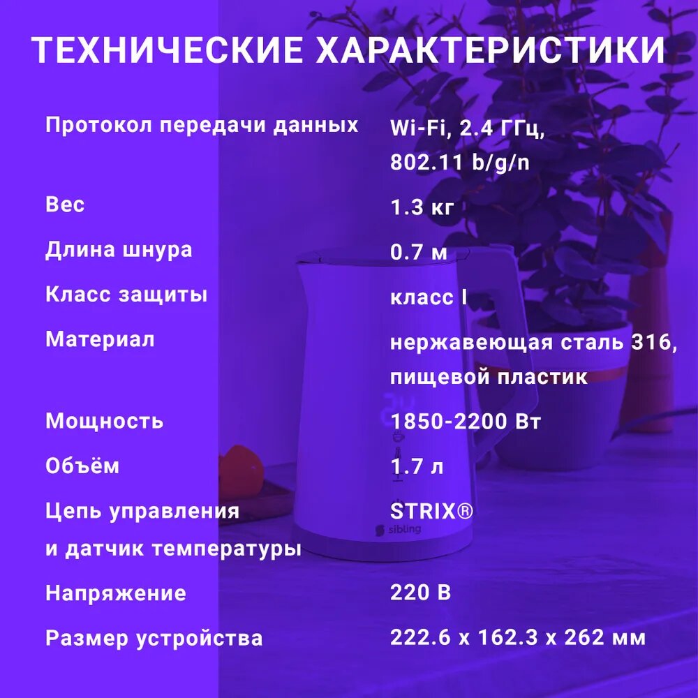 Умный электрический чайник Sibling Powerspace-SK, работает с Алисой и по Wi-Fi