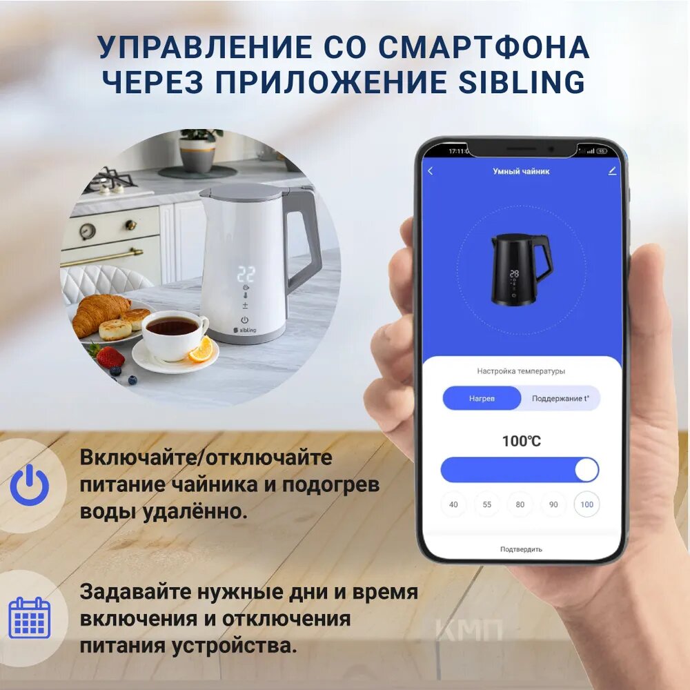 Умный электрический чайник Sibling Powerspace-SK1, работает с Алисой и по Wi-Fi цвет Черный