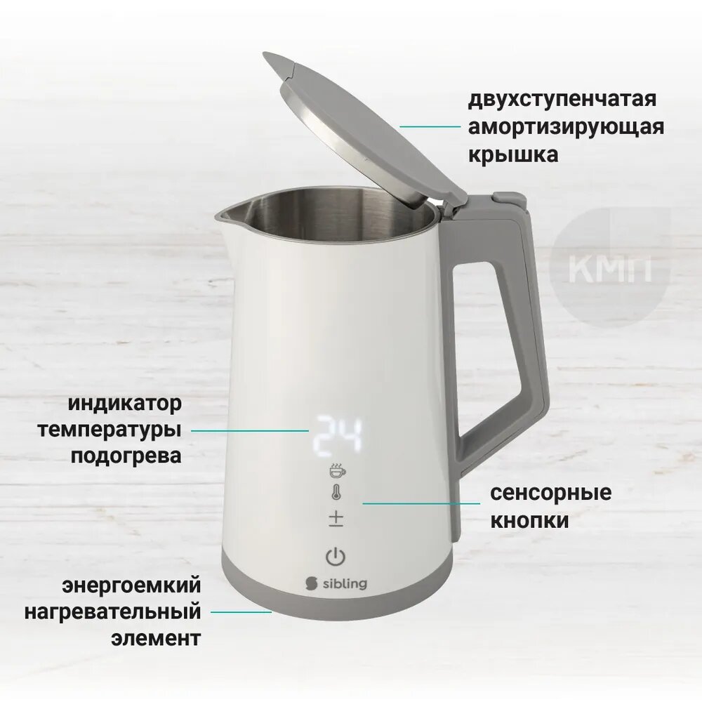 Купить Умный электрический чайник Sibling Powerspace-SK (бело-серый) (Powerspace-SK)