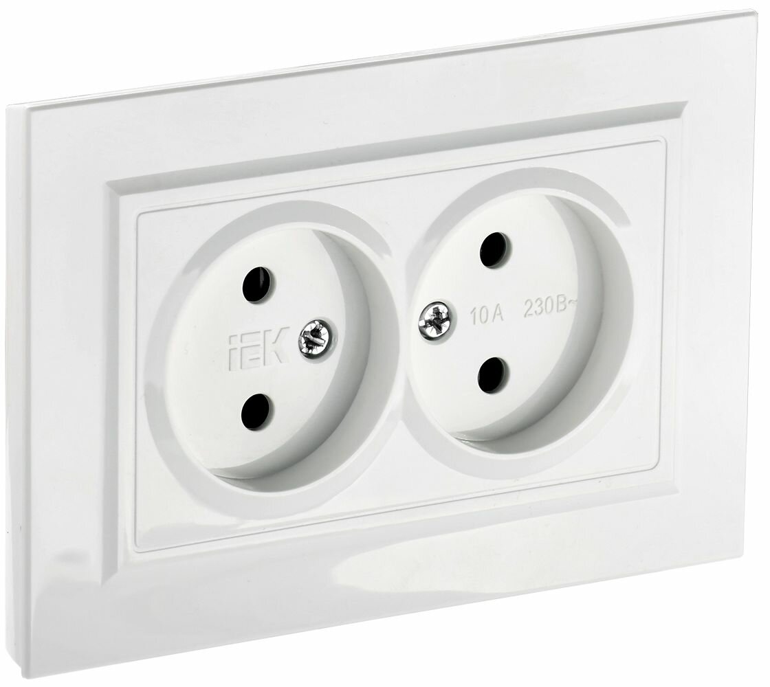 IEK BRITE Розетка 2-местная без заземления без защитных шторок 10А в сборе РС12-2-БрБ белый