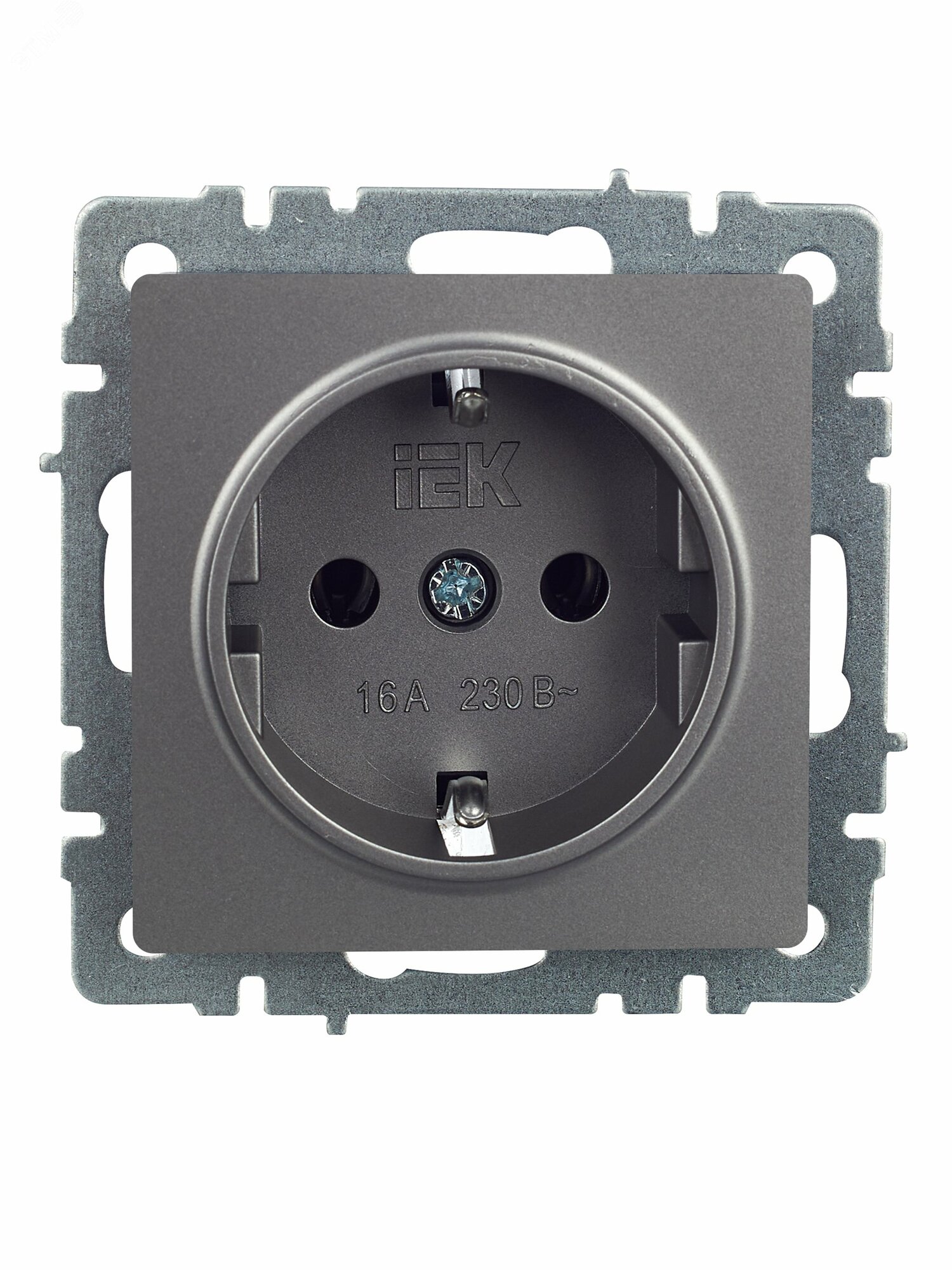 Розетка одноместная Графит с заземлением без защитных шторок 16А IEK Brite