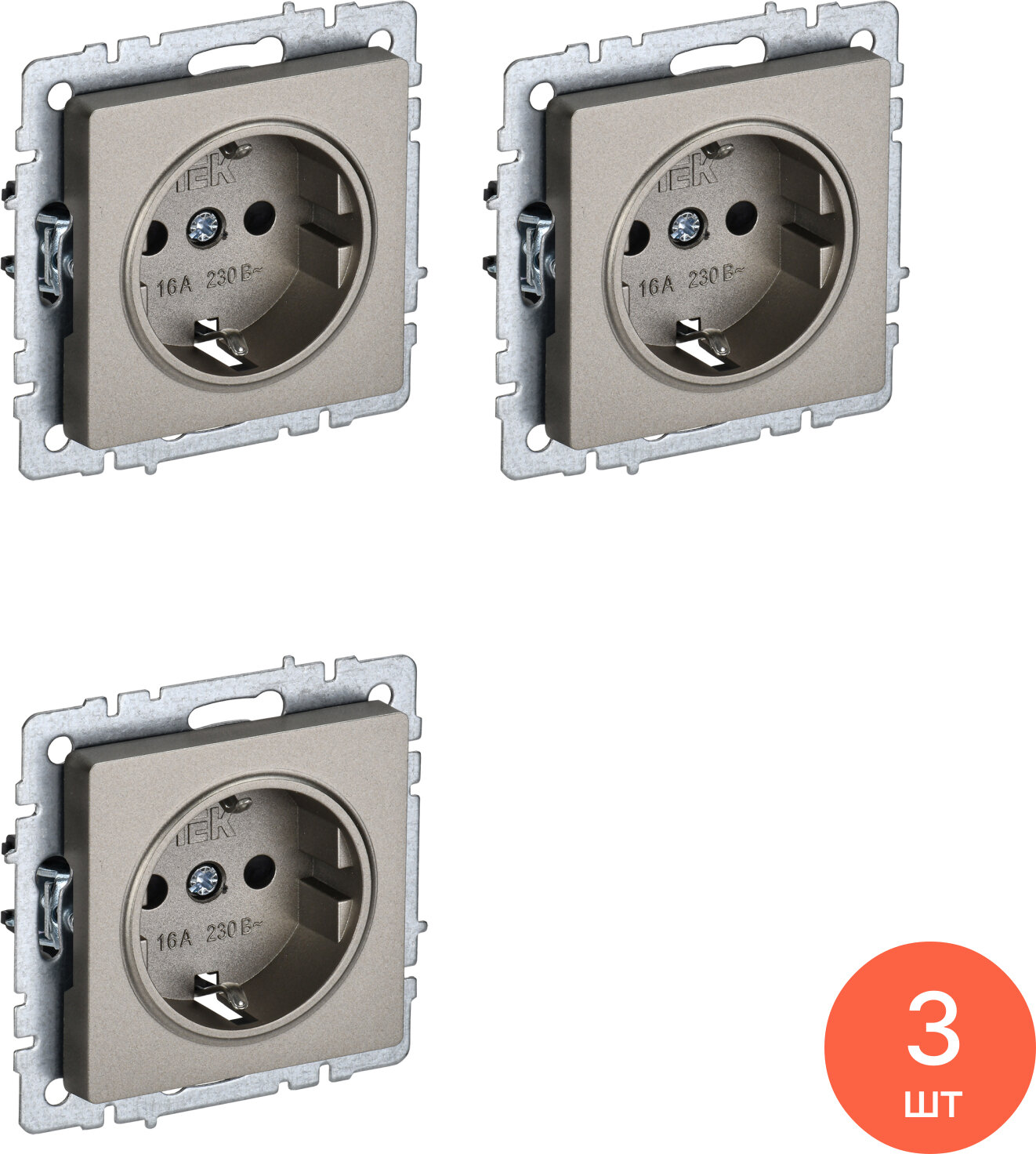 3шт. - BRITE Розетка с заземлением без защитных шторок 16А РС11-1-0-БрШ шампань / IEK; арт. BR-R11-16-K37; оригинал / - комплект 3шт