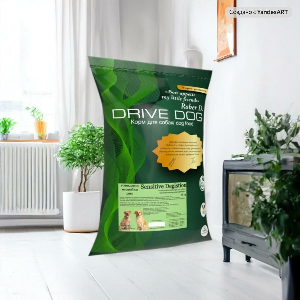 DRIVE DOG Sensitive Digestion Полнорационный корм для собак с чувствительным пищеварением говядина с индейкой и рисом 10 кг