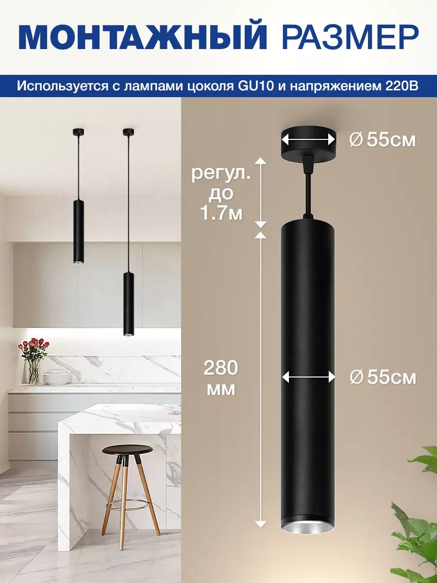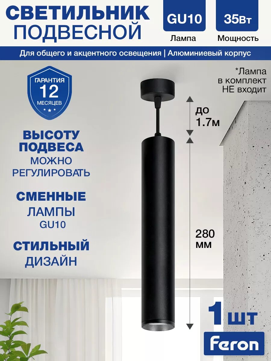 Светильники для помещений FERON Светильник потолочный Feron ML1768 на подвесе MR16 35W 230V, черный 55*280