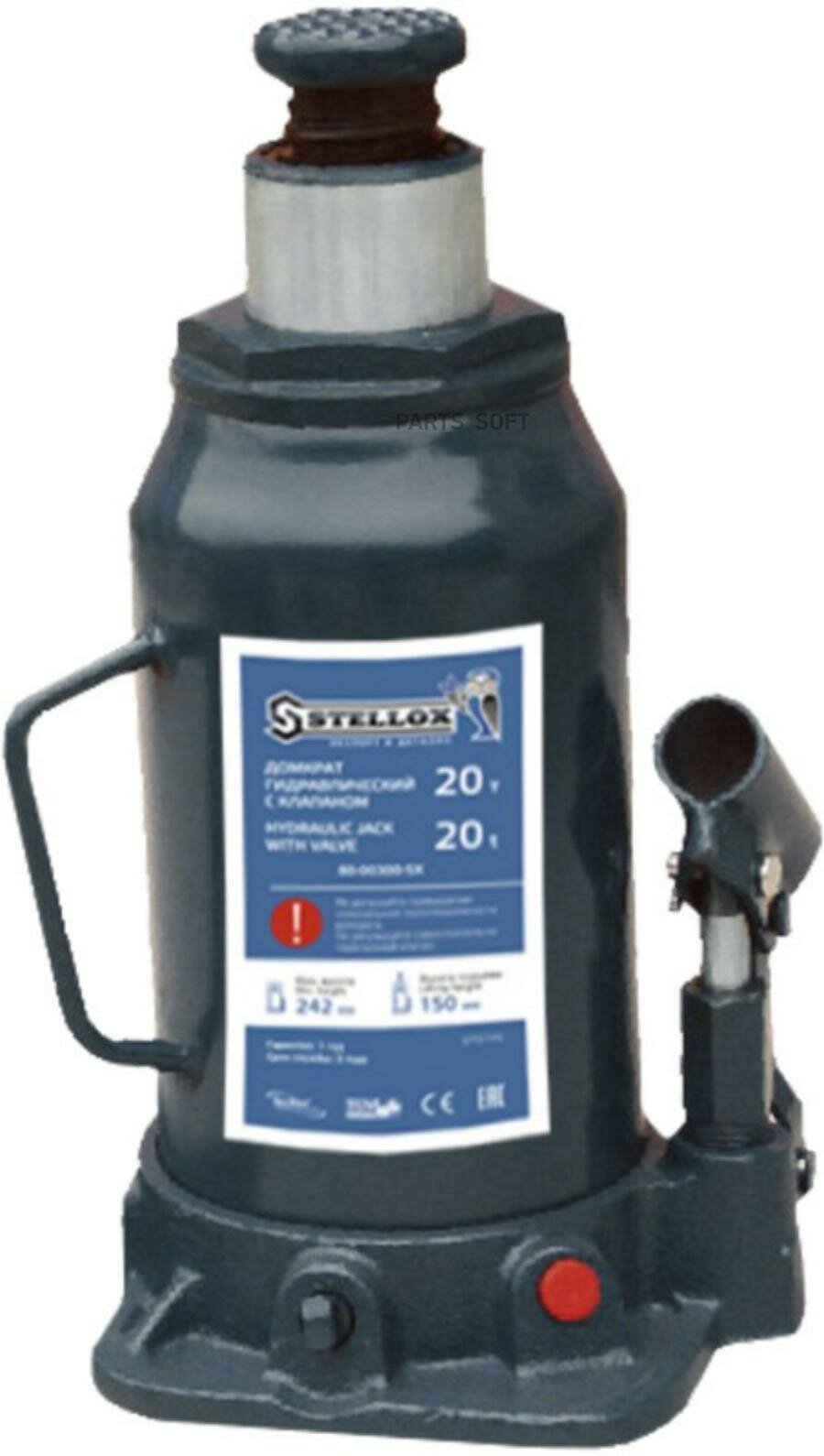 80-00300-SX_домкрат гидравлический !бутылочный 20т. высота подъёма min-242 max-452mmUNIVERSAL, STELLOX 8000300SX (1 шт.)