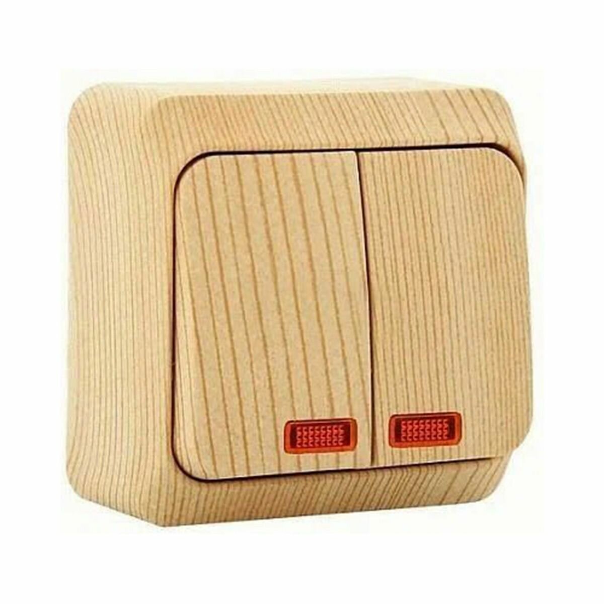 Выключатель двухклавишный с подсветкой Этюд сосна (комплект из 2 шт.)