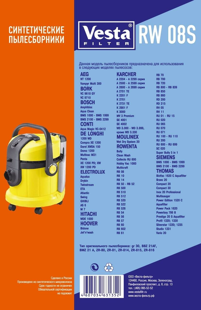 Мешок для пылесоса Vesta filter, RW 08 S