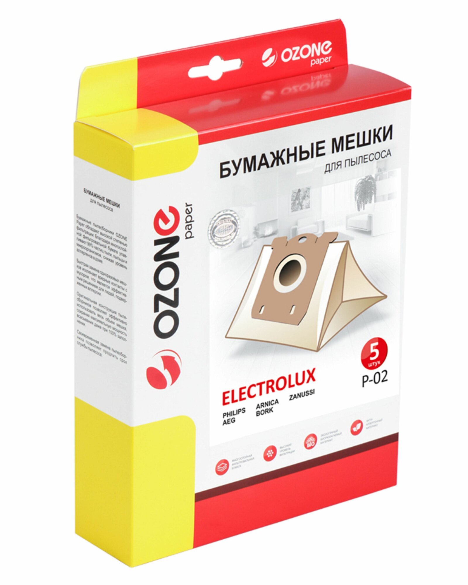 Пылесборник OZONE P-02 для пылесоса ELECTROLUX, 5 шт., бумажные (тип оригинального мешка: S-Bag)