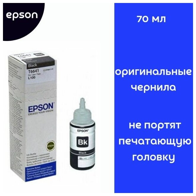Чернила Epson 664 (C13T66414A/C13T664198), черный, оригинальные для Epson L100/ L110/ L120/ L132/ L200/ L210/ L222/ L300/ L312/ L350/ L355/ L362/ L366/ L456/ L550/ L555/ L566/ L1300