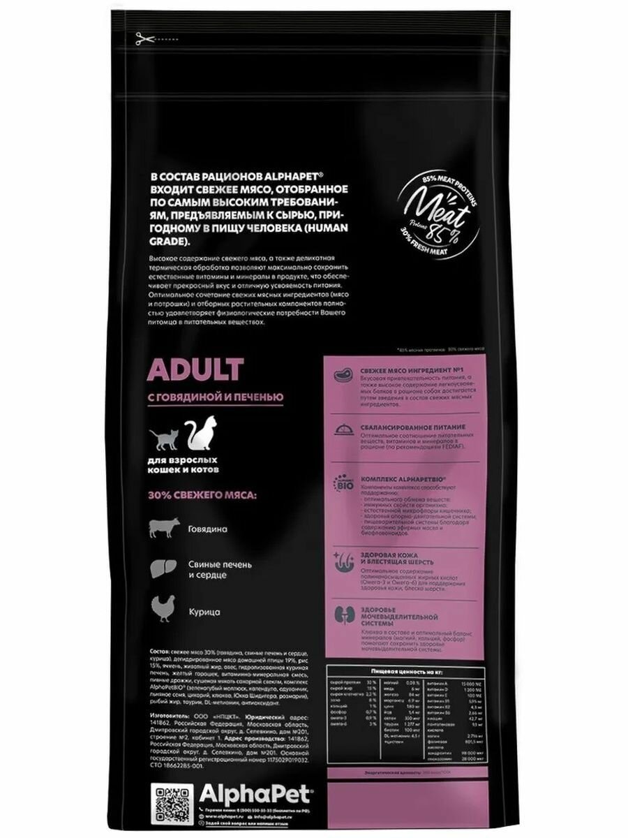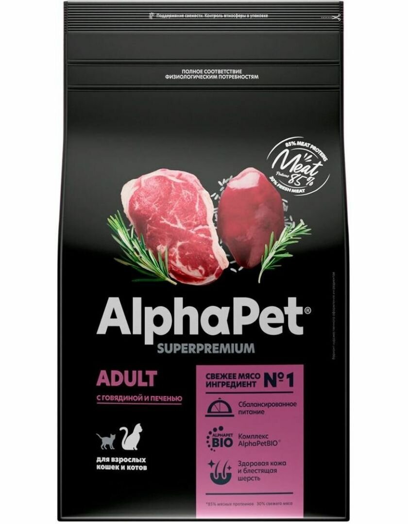 Сухой корм для кошек AlphaPet Superpremium с говядиной и печенью, 1,5кг
