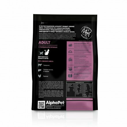 AlphaPet Superpremium (АльфаПет) корм для кошек с говядиной и печенью 1,5кг