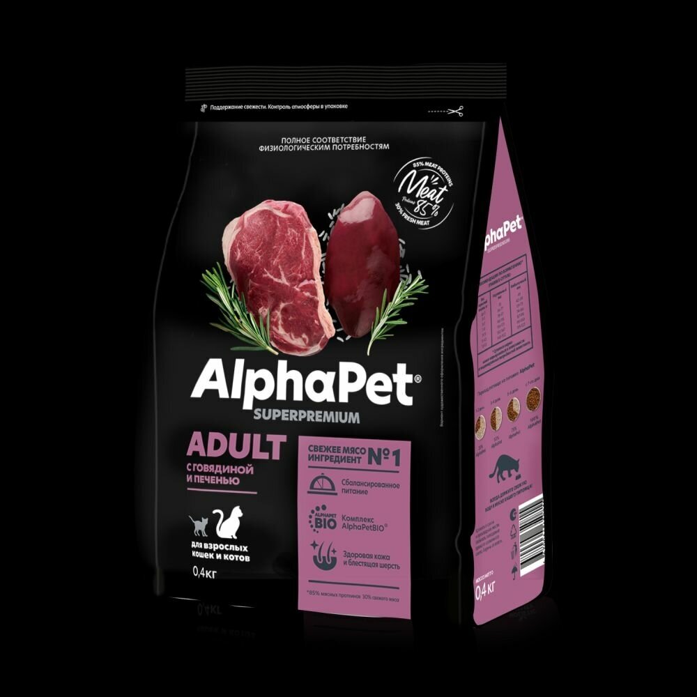 Купить AlphaPet Superpremium (АльфаПет) 0,4кг с говядиной и печенью сухой корм для домашних кошек (650815)