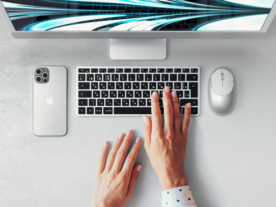 Беспроводная клавиатура Satechi Slim X1 Bluetooth Keyboard-RU. Раскладка - Русская. Цвет- серебристый