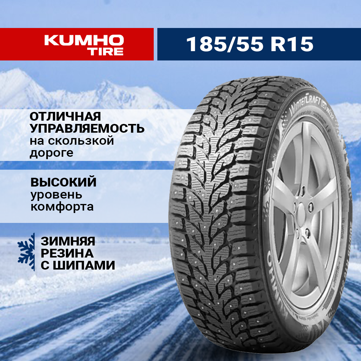 СохранитьЗимняя шипованная шина Kumho WI32 185/55 R15 86T интересное: