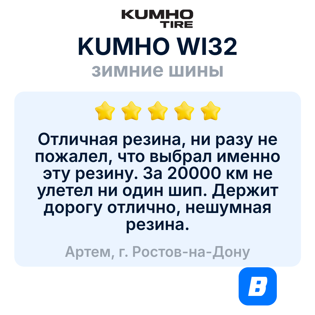 Ниже Вы можете прочитать отзывы на Зимние шины Kumho WI32 195/55R15 89T, ознакомится с подробными характеристиками, посмотреть интересные обзоры и фотографии на Зимние шины Kumho WI32 195/55R15 89T.