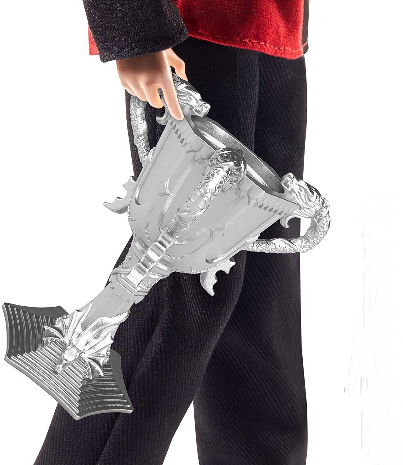 Брюки. Мантия. Не шёлк, конечно, но тоже весьма хороша. Его личная волшебная палочка. И у Волдеморта есть подставка. Гарри Поттер, как ни странно, выглядит очень не плохо. Одежда добротная, с Турнира Трёх волшебников. Мощные ботинки) Видимо из-за их наличия, подставка у Гарри отсутствует. Очки-велосипеды и палочка в комплекте. Обе куклы шарнирные. Кубок красивый. |