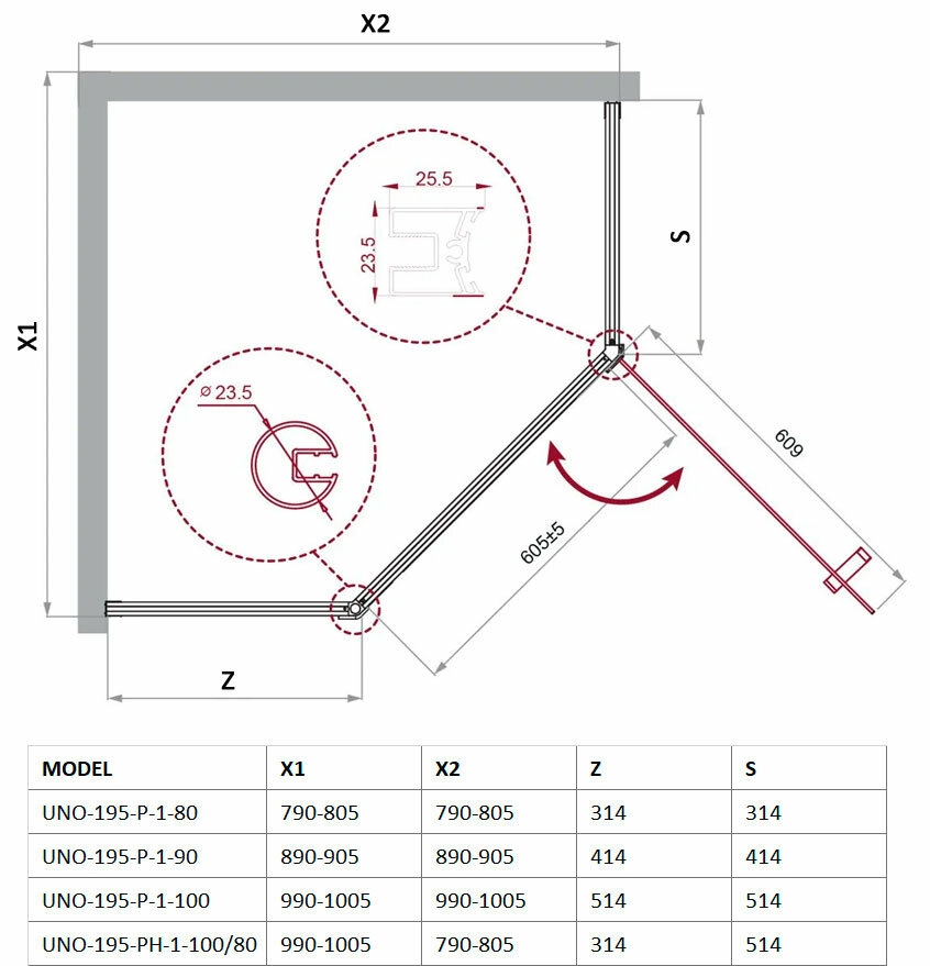 | Дополнительная информация | Душевой уголок для монтажа на поддон или непосредственно на плитку (универсальный). В комплекте с душевым уголком все крепежные элементы и силиконовые уплотнители. Поддон в комплект не входит - заказывается дополнительно. |