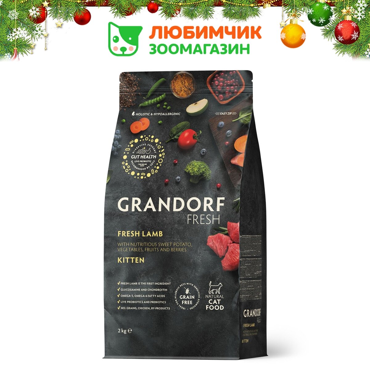 Сухой беззерновой корм GRANDORF FRESH для котят, мясо ягненка с бататом, 2 кг