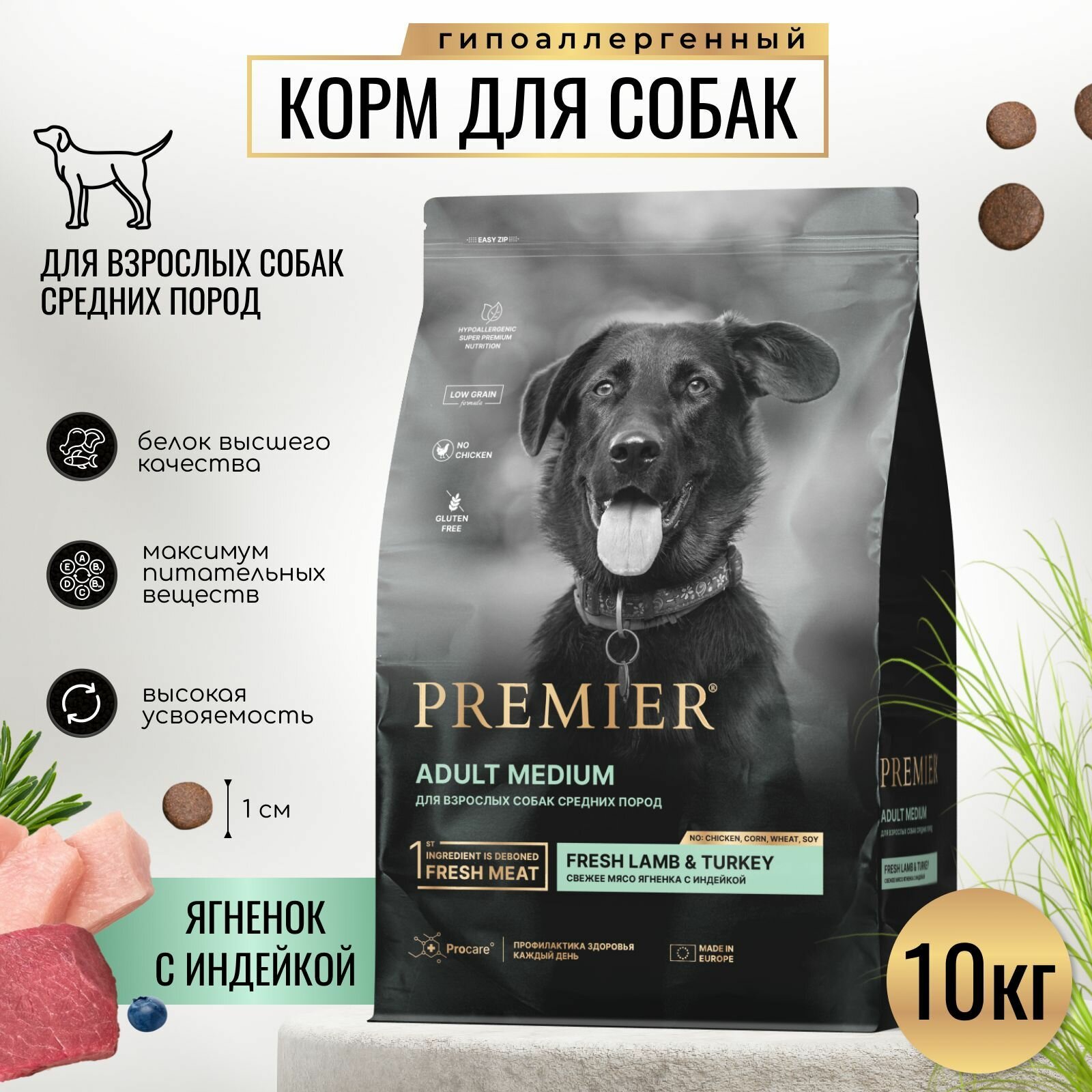 Купить Premier Dog Lamb Turkey Adult Medium сухой корм для собак средних пород, свежее мясо ягненка с индейкой 10 кг