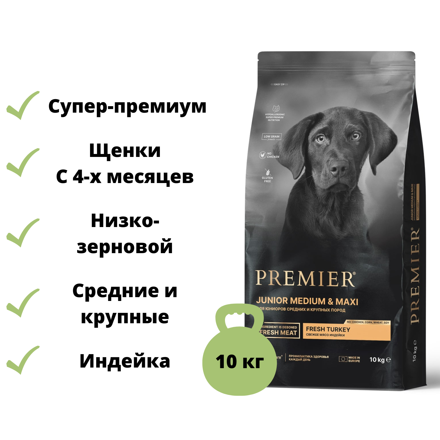 PREMIER LOW GRAIN JUNIOR MEDIUM & MAXI TURKEY низкозерновой для юниоров средних и крупных пород (10 кг)