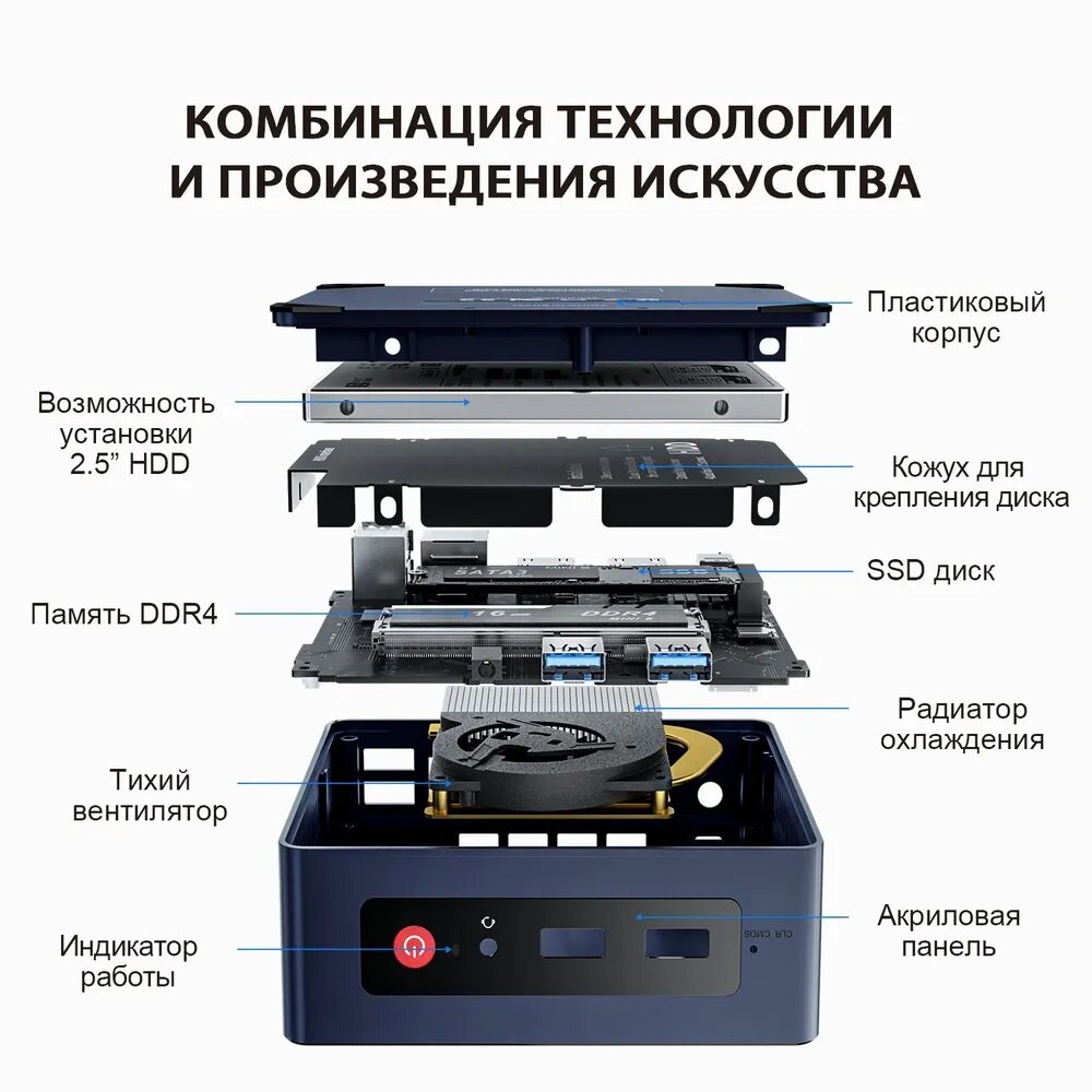 Неттоп Beelink Mini S 8/128 Tiny-Desktop, Intel Celeron Processor N5095, 8 ГБ RAM, 128 ГБ SSD, Intel UHD Graphics, Windows 11 Pro, 36 Вт, синий