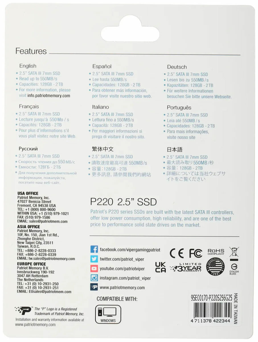 Ниже Вы можете прочитать отзывы на SSD накопитель Patriot Memory 2.5'' P220 256 Гб SATA III (P220S256G25), ознакомится с подробными характеристиками, посмотреть интересные обзоры и фотографии на SSD накопитель Patriot Memory 2.5'' P220 256 Гб SATA III (P220S256G25).