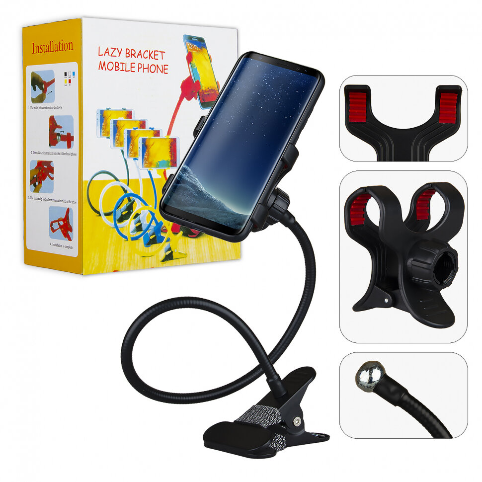 Держатель для телефона гибкий универсальный с прищепкой черный