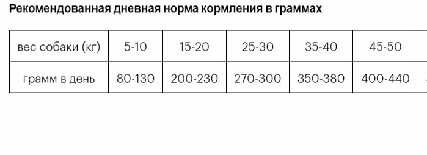 | Дополнительная информация | суточная норма может варьироваться в зависимости от возраста, комплекции и уровня активности питомца; не забывайте своевременно пополнять миску свежей питьевой водой |