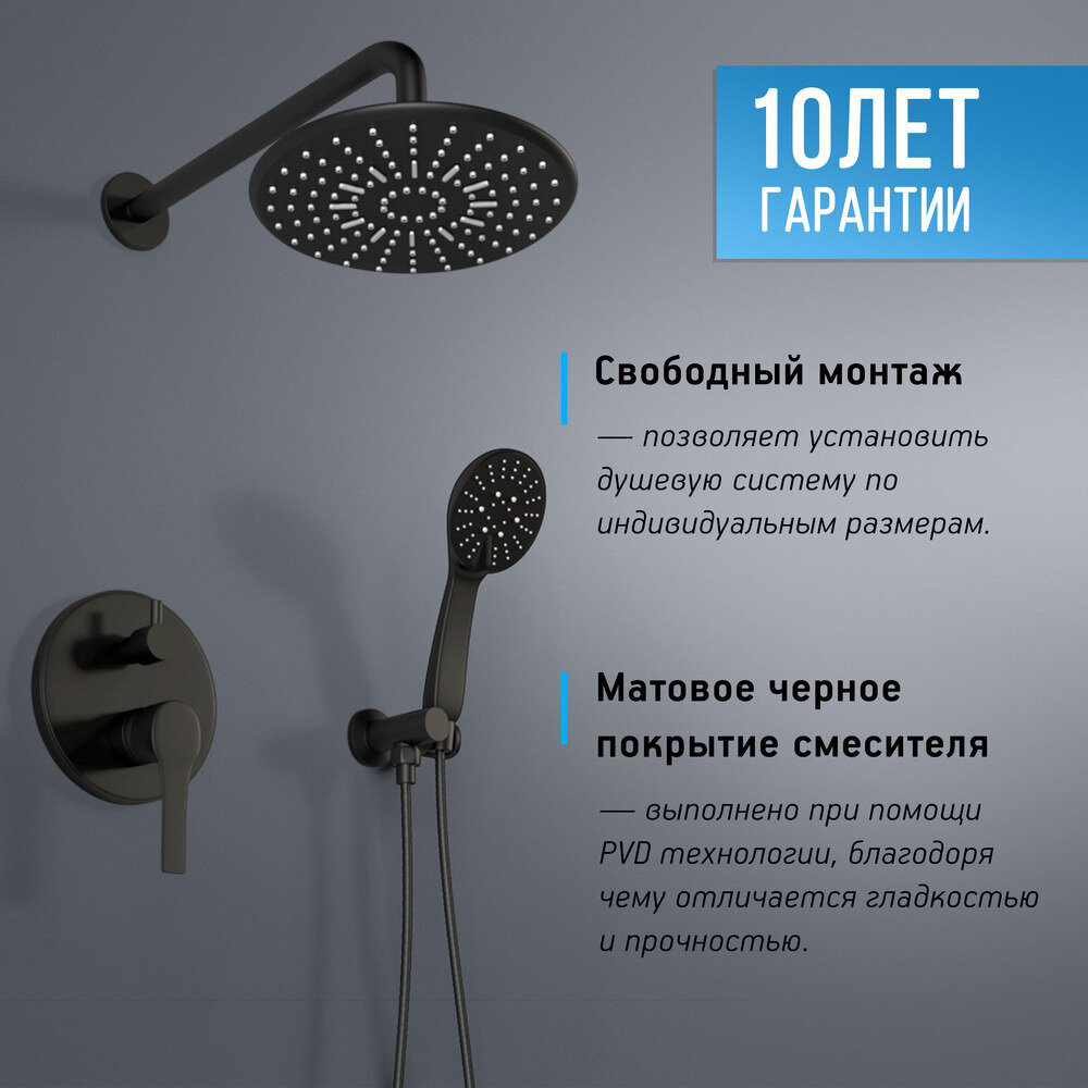 Встраиваемая душевая система Esko 6in1 SB со смесителем, матовая черная интересное: