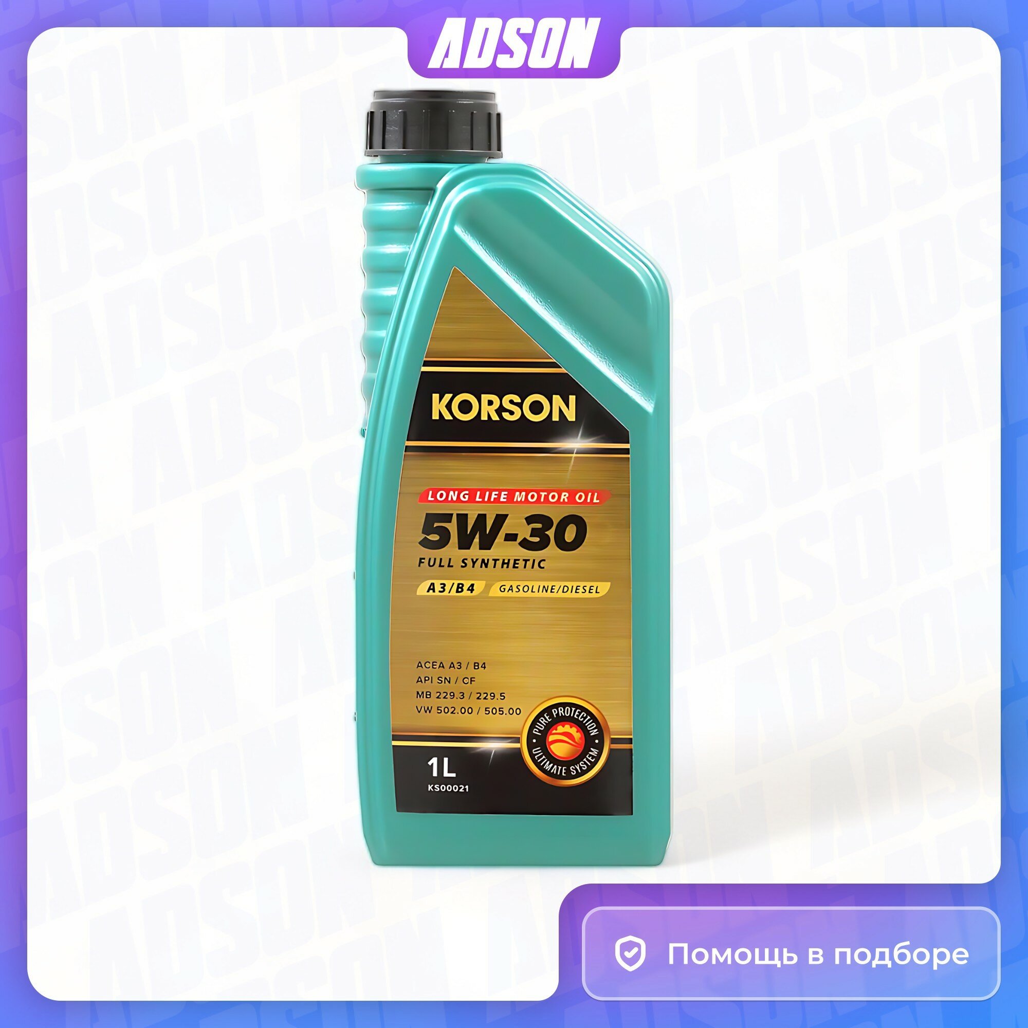 5W-30 SEMI SYNTHETIC A3 B4 1л (полусинт. мотор. масло) KORSON KS00091 интересное: