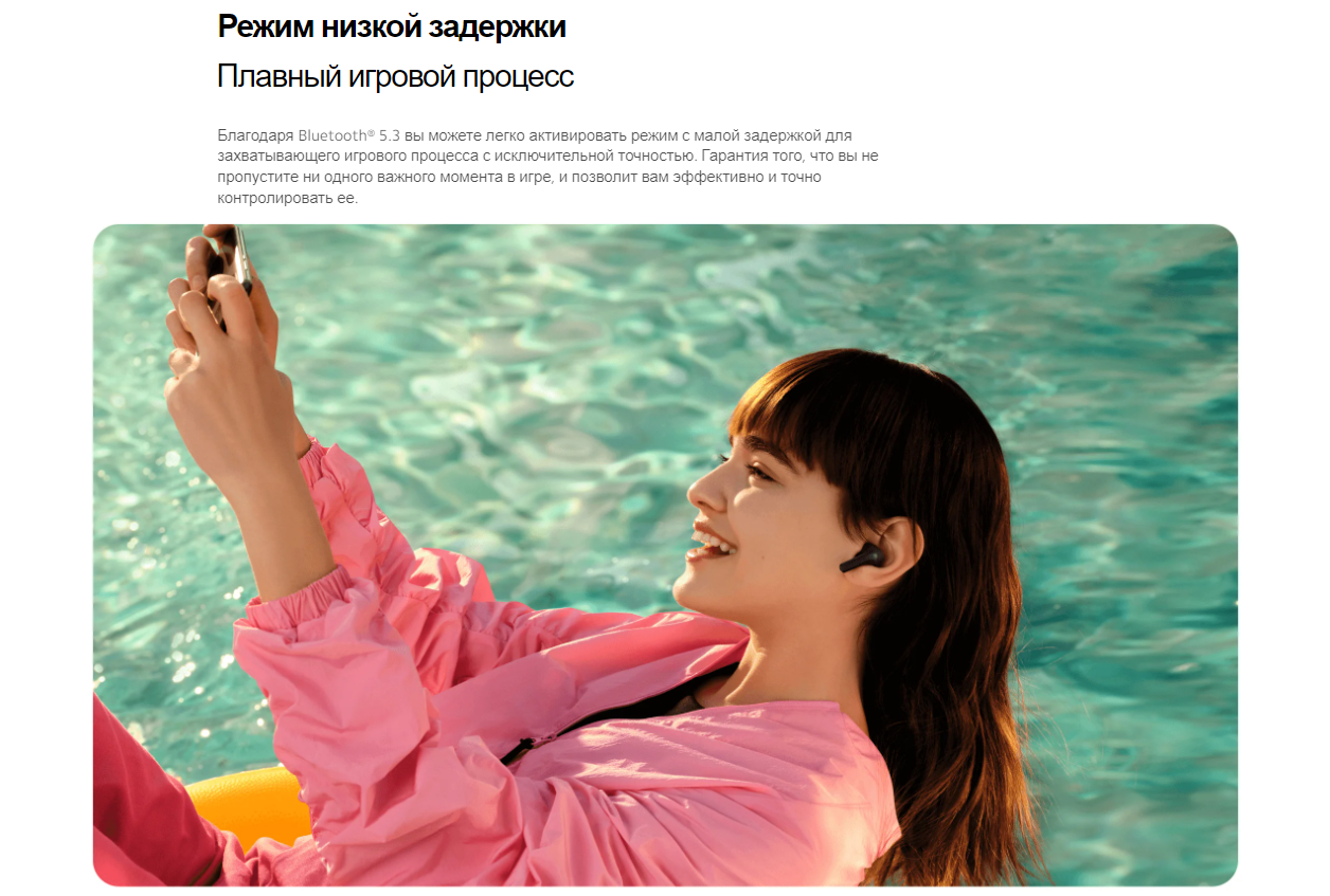 | Дополнительная информация | радиус действия - 10м; 3 уровня активного шумоподавления (ANC) и адаптивный режим; алгоритм ИИ для шумоподавления; двойной режим прозрачности; |