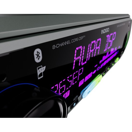 Автомагнитола 1DIN. AURA INDIGO-879DSP /мультицвет/процессор/USB/FM/Bluetooth