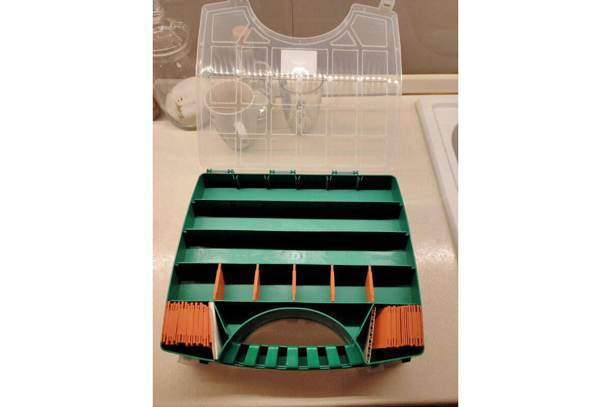 | Отзыв: | Бокс удобный. Много отсеков. Крышка не плотно прилегает к рёбрам отсеков. В некоторых отсеках у меня лежат шайбочки на 3, 4, 5 ,6 - они при переносе бокса - переваливаются в другие отсеки. |
