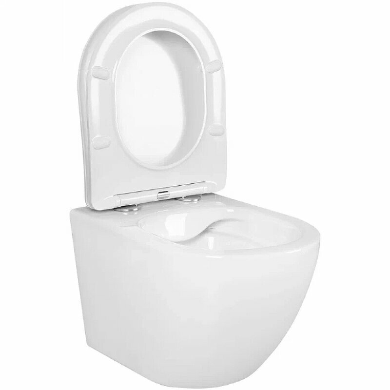 Унитаз подвесной безободковый AQUATEK европа AQ1900-00 490*360*320 мм, горизонтальный выпуск, тонкое сиденье с механизмом плавного закрывания, крепеж