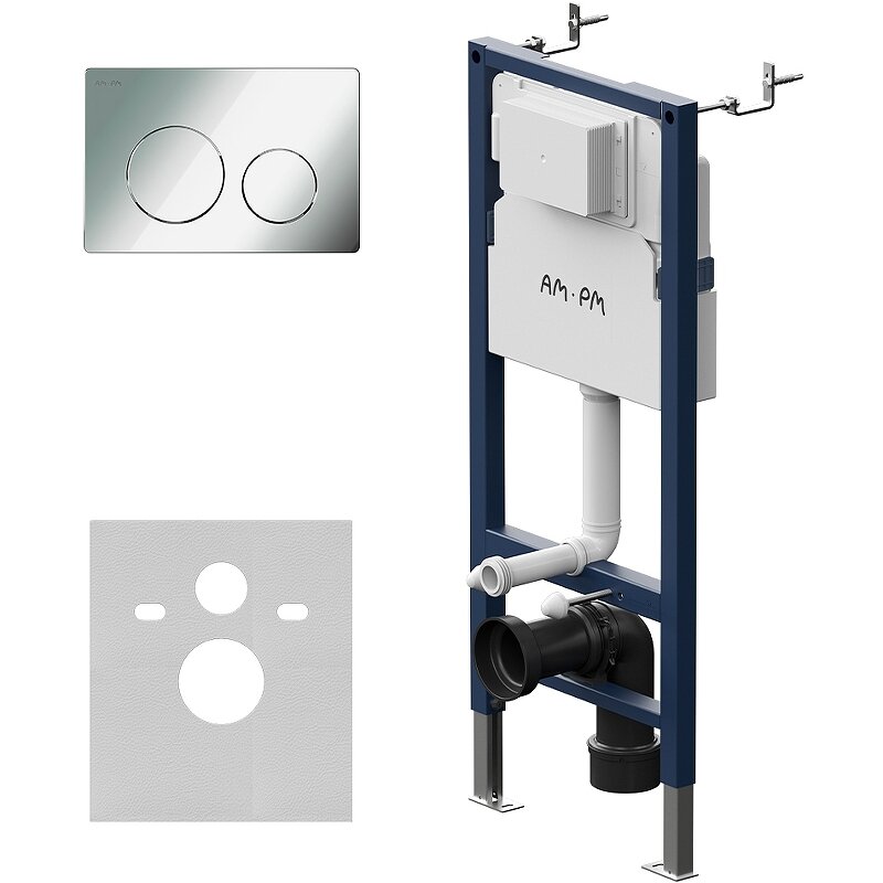 Инсталляция с подвесным унитазом AM.PM Sense FlashClean, мех. кнопка ProC L глянцевый хром, шумоизоляция