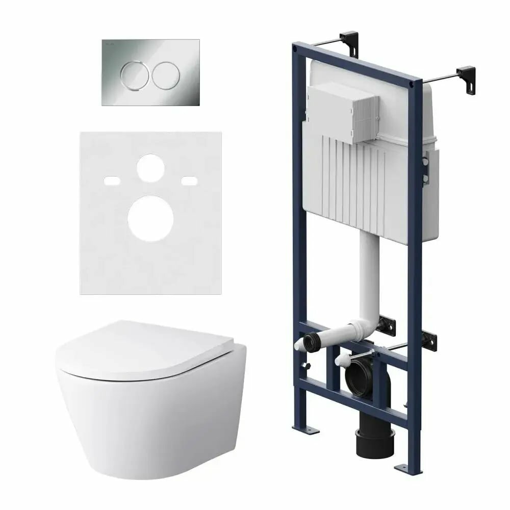 Комплект унитаза с инсталляцией AM.PM Sense FlashClean IS90151.741701 с сиденьем Микролифт и клавишей смыва Хром глянцевый