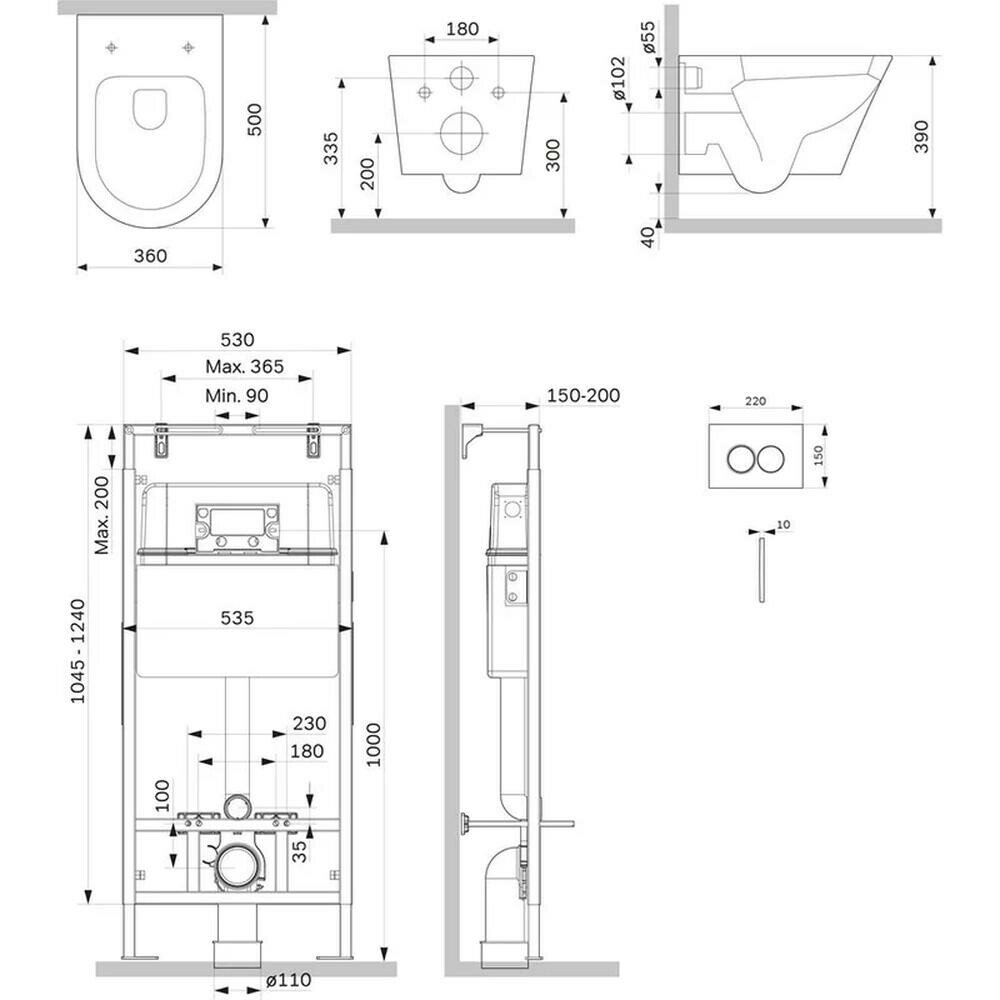 Инсталляция с подвесным унитазом AM.PM Sense, мех. кнопка ProC L черный матовый, сиденье с микролифтом