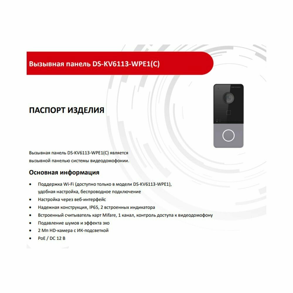 DS-KV6113-WPE1(C) Hikvision Вызывная панель IP-видеодомофона с Wi-Fi интересное: