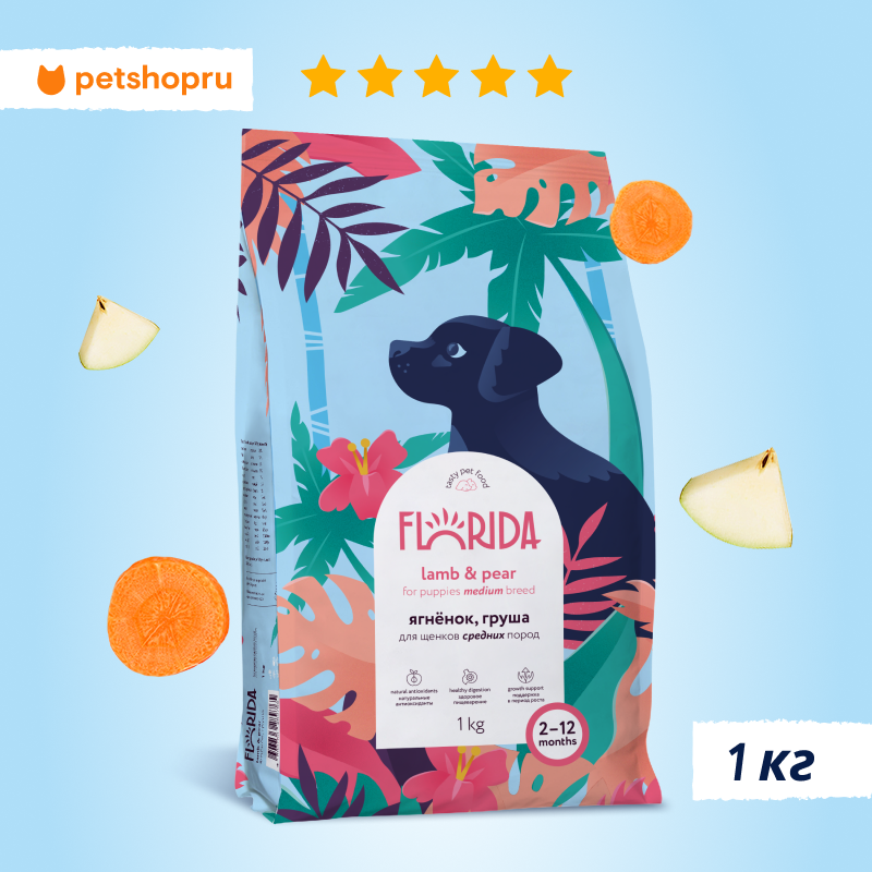 Florida сухой корм для щенков средних пород с ягненком и грушей 1кг интересное: