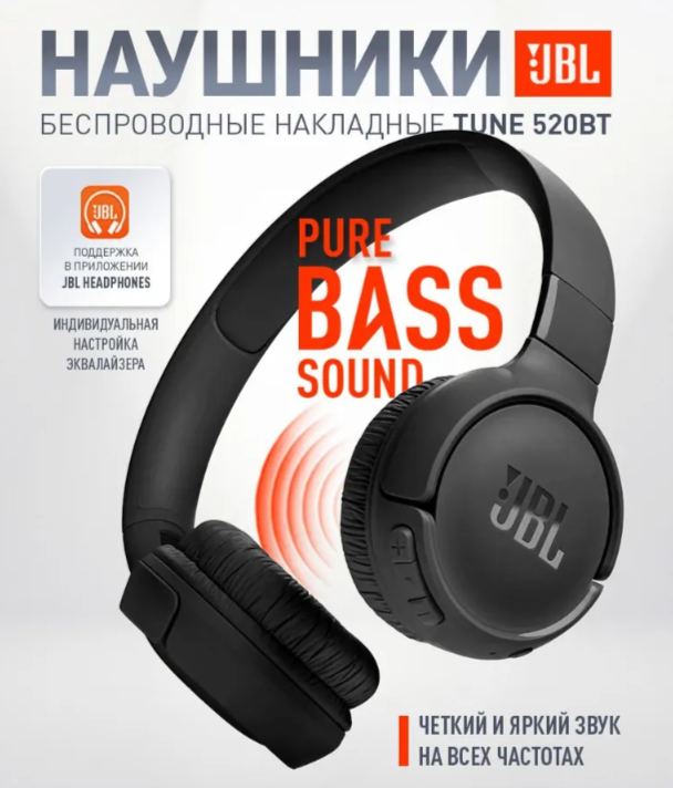 Беспроводные наушники JBL Tune 520 BT, черные, накладные