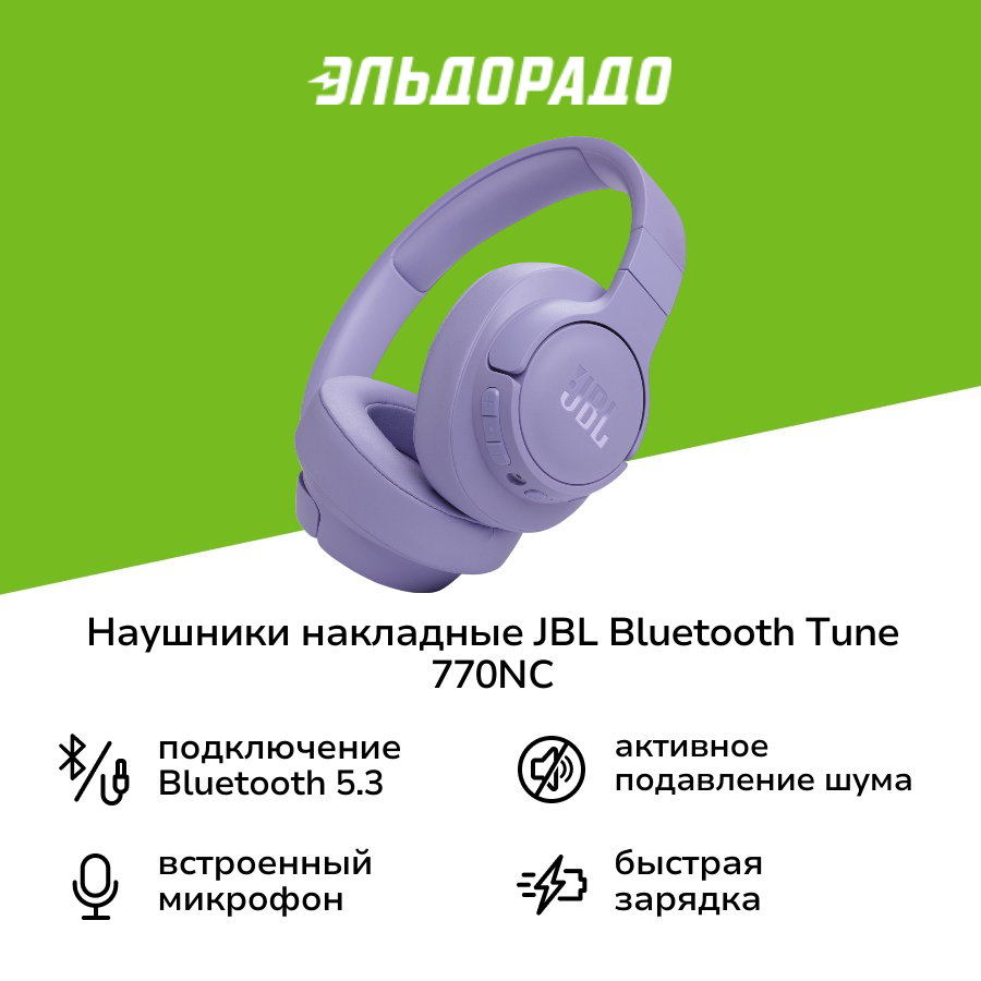Ниже Вы можете прочитать отзывы на Беспроводные наушники JBL Tune 770 NC, mini jack 3.5 mm, фиолетов, ознакомится с подробными характеристиками, посмотреть интересные обзоры и фотографии на Беспроводные наушники JBL Tune 770 NC, mini jack 3.5 mm, фиолетов.