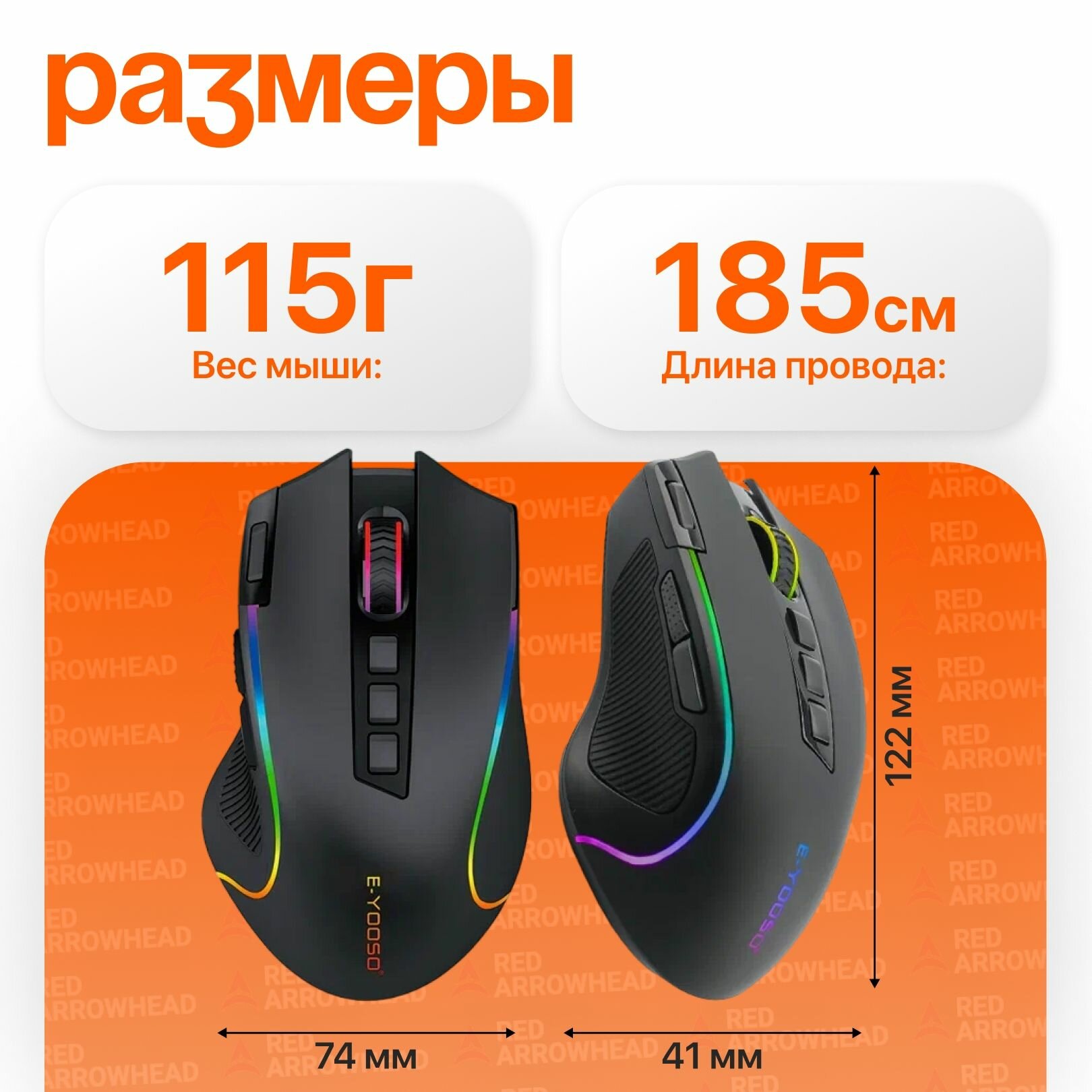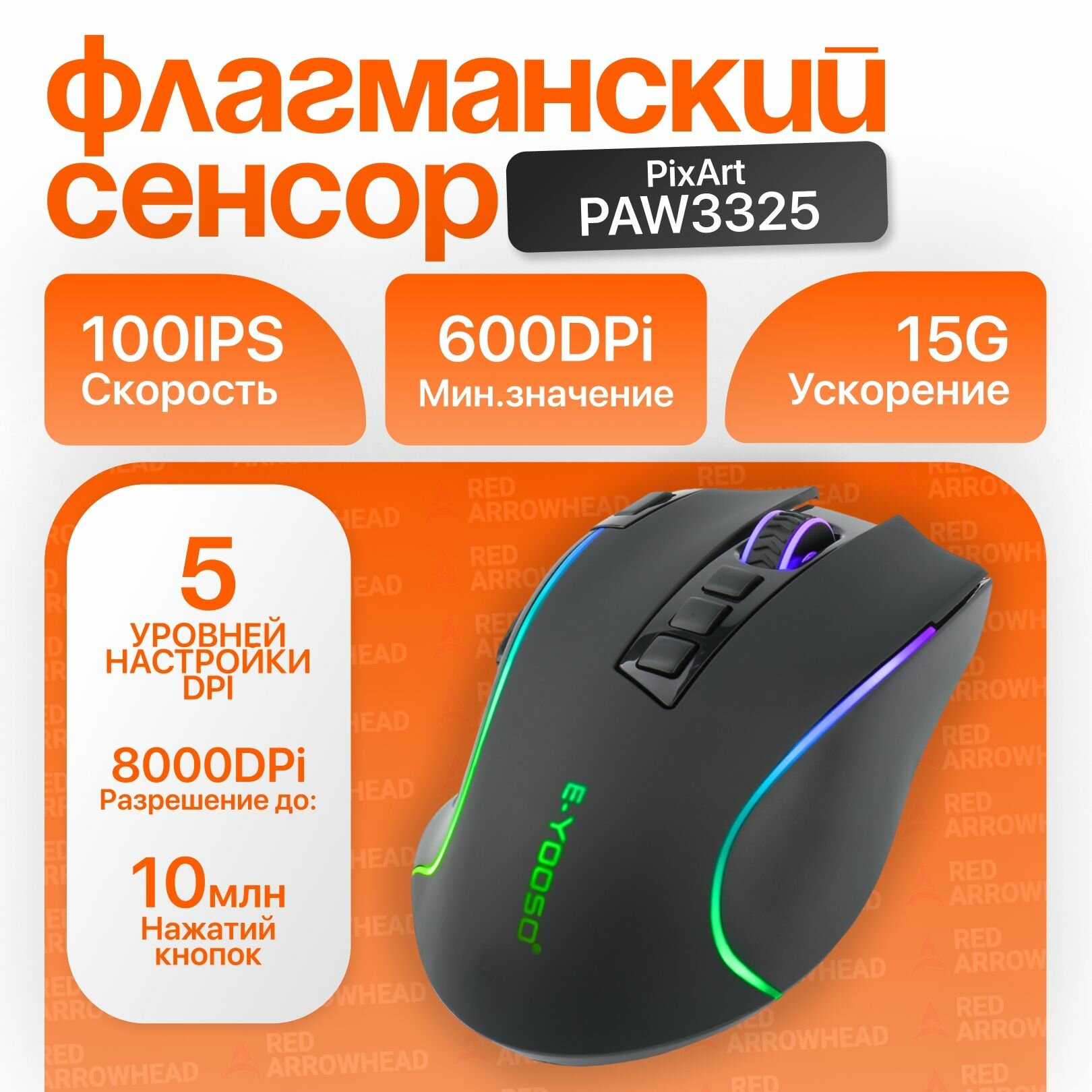 Игровая гибридная компьютерная мышь "E-YOOSO X-11" , 10 кнопок, 8000 DPI, RGB.