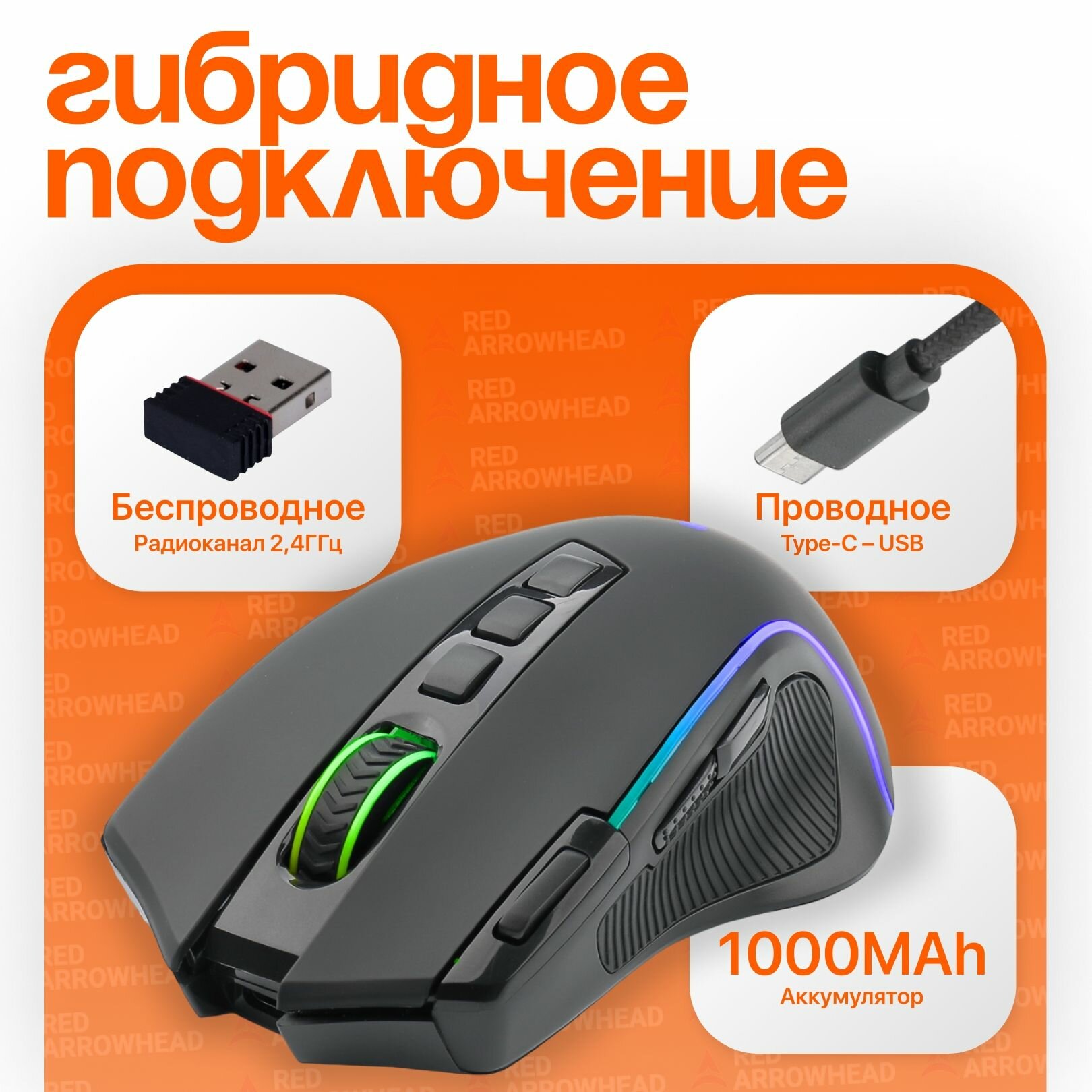 Беспроводная мышка для компьютера со встроенным аккумулятором/ Бесшумная блютуз компьютерная мышь с подсветкой RGB/ Bluetooth/ WiFi 2.4 гц